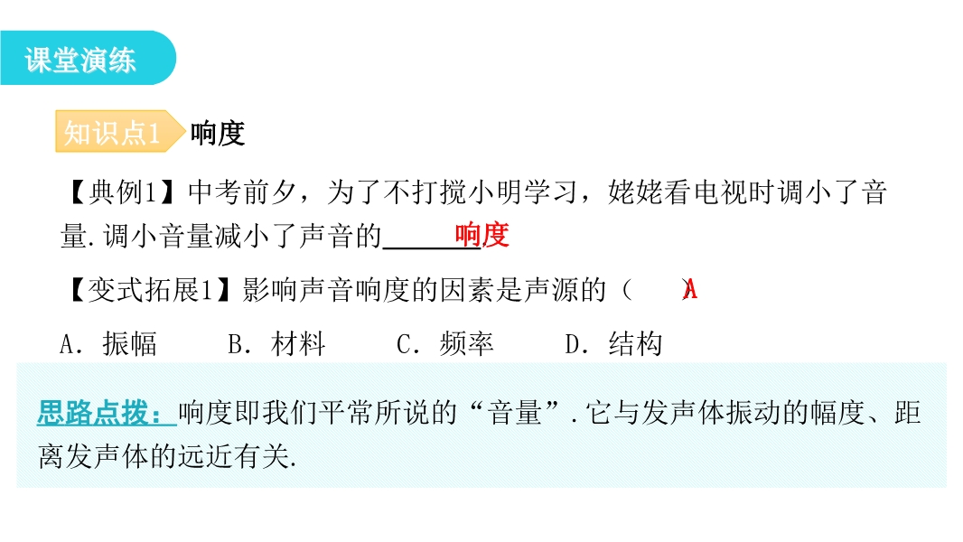 2.2 声音的特性 第2课时 响度和音色—2020秋人教版八年级物理上册课堂学习课件(共14张PPT)