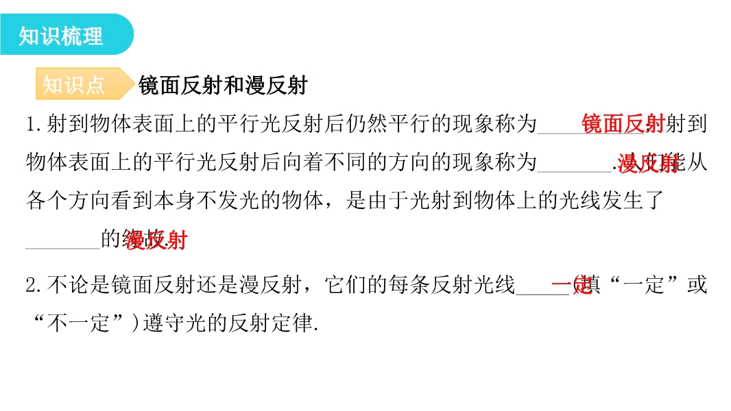 - 307人教版八年级物理上册《4.2.2 光的反射(第2课时)镜面反射和漫反射》精品微课堂