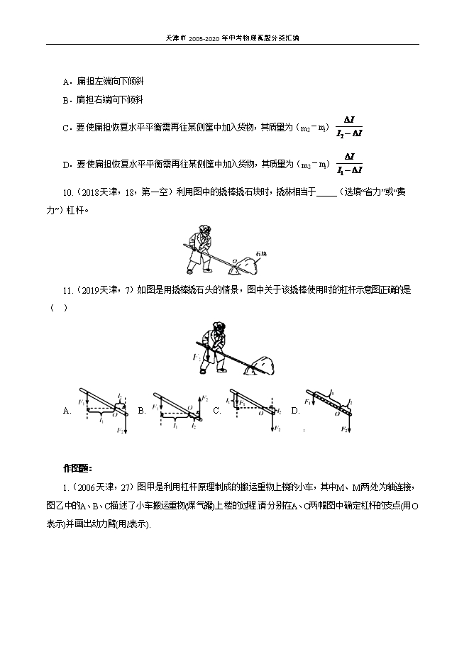 天津市2005-2020年中考物理真题分类汇编:专题11 杠杆(原卷版和解析版)