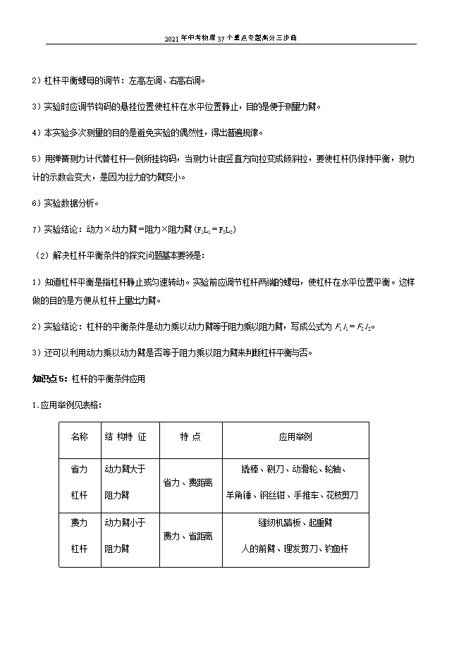 专题15 杠杆中考问题考法与解法--2021年中考物理37个重点专题高分三步曲(原卷版和解析版)