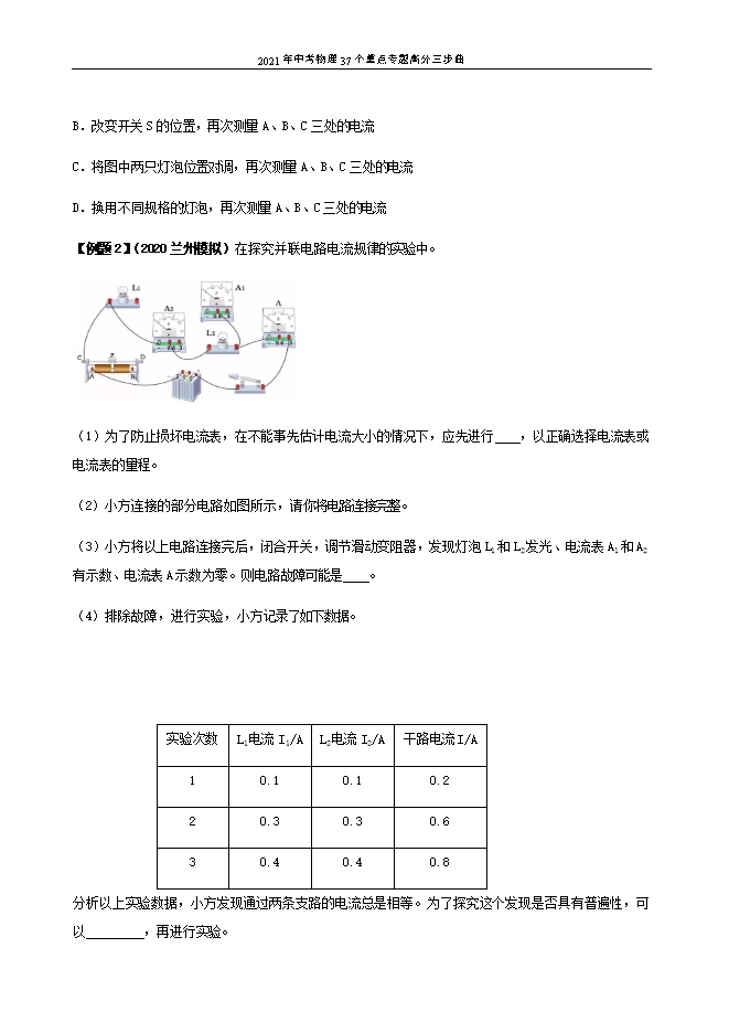 专题23 串并联电路电流、电压特点的实验--2021年中考物理37个重点专题高分三步曲(原卷版和解析版)