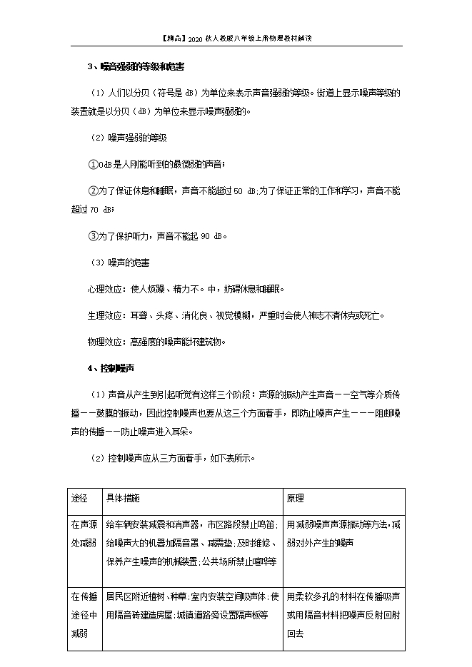 【精品】2020秋人教版八年级上册物理教材解读:2.4 噪声的危害和控制(原稿版和解析版)