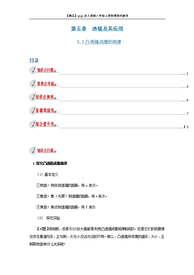【精品】2020秋人教版八年级上册物理教材解读:5.3 凸透镜成像的规律(原稿版和解析版)