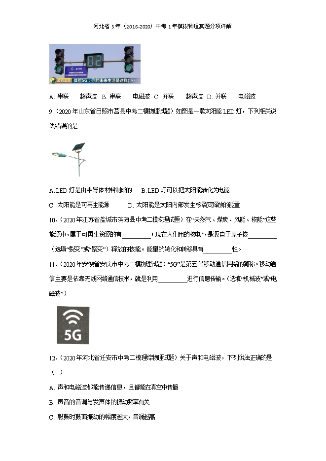 专题21 信息 材料与能源--河北省5年(2016-2020)中考1年模拟物理真题分项详解(原卷版和解析版)
