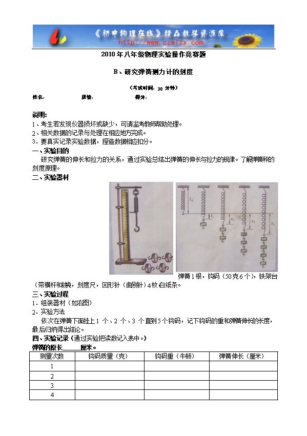 1、考生若发现仪器损坏或缺少,可请监考教师帮助处理。