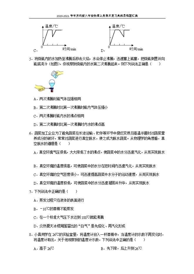 2020-2021学年苏科版八年级物理上册期末复习高频易错题汇编:2.2 汽化和液化(原卷版和解析版)