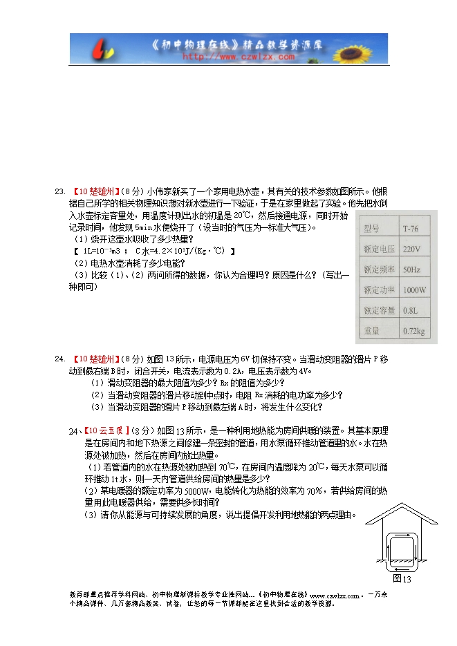 2010年中考物理试题分类汇编--电功与电功率(2)(120套)