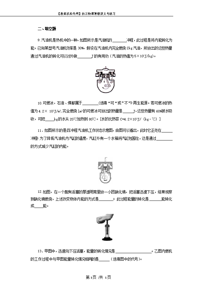 【教育机构专用】2020-2021学年九年级物理寒假辅导讲义与练习:专题06 内能的利用