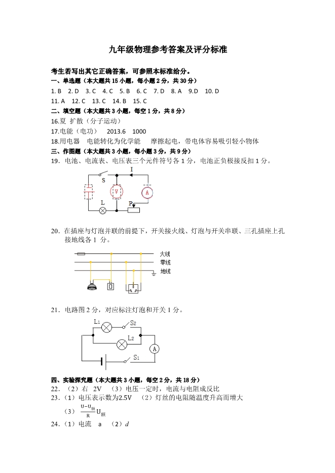 湖北省鄂州市2021届九年级上学期期末考试物理试题及答案(PDF版)