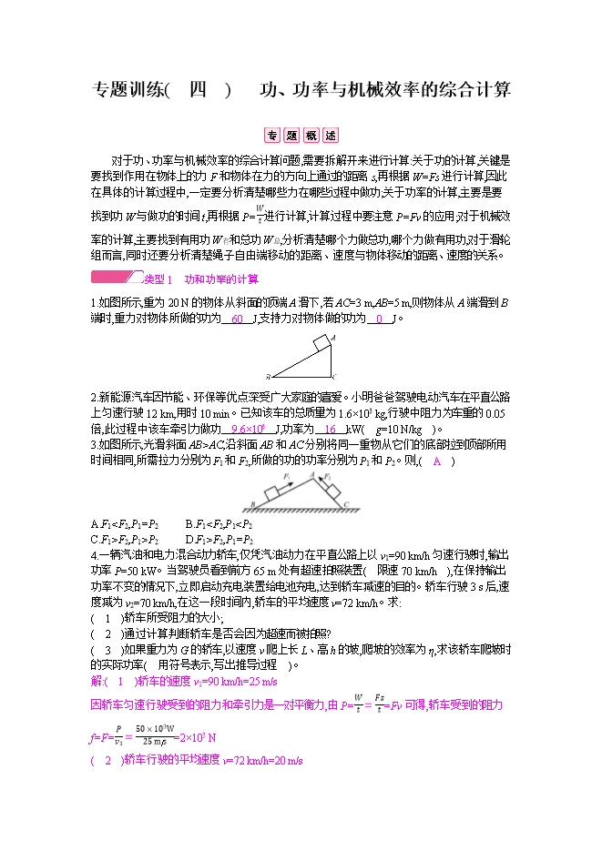 - 237【精品】2021年中考物理压轴题大揭秘专题:07 功与功率的综合计算(原卷版和解析版)