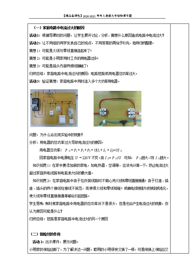 - 16019.2家庭电流电流过大的原因—2020-2021人教版九年级物理全一册ppt课件