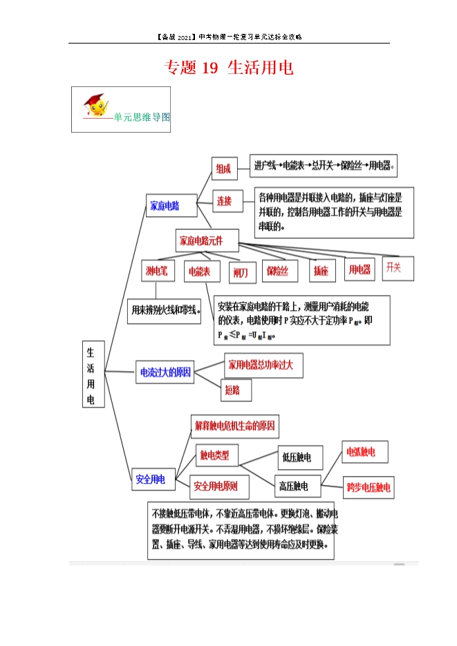 【备战2021】中考物理一轮复习单元达标全攻略:专题19 生活用电(原卷版和解析版)