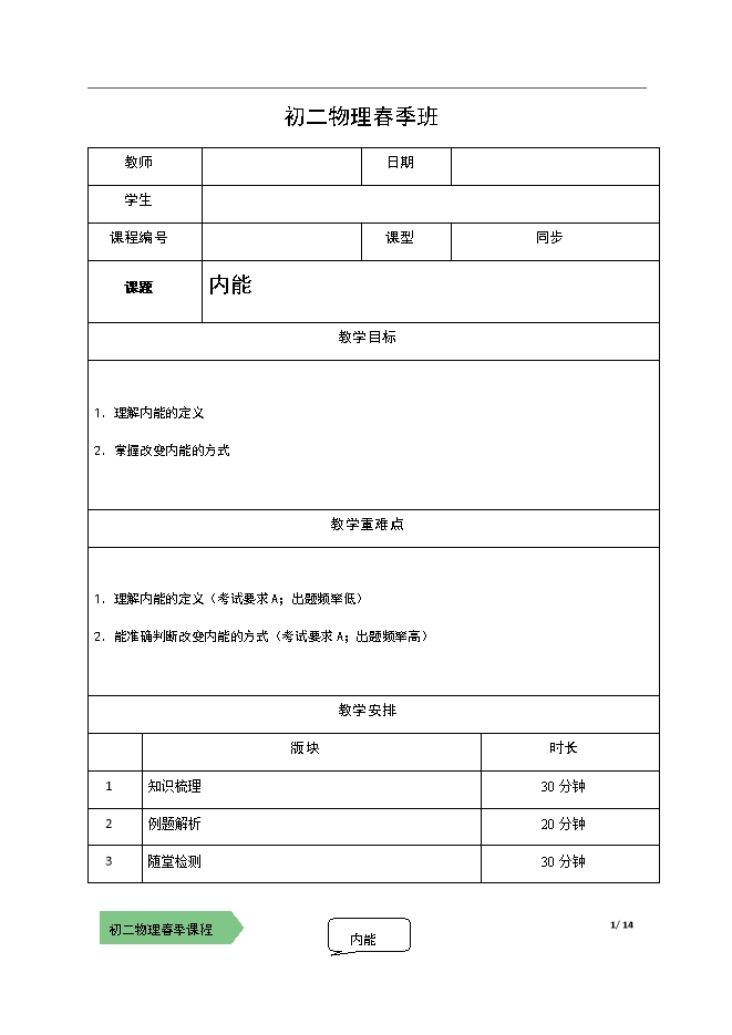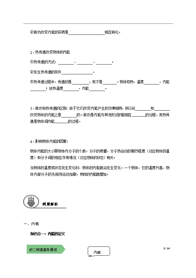 13 内能--上海沪教版八年级下学期物理个性化辅导讲义(教育机构专用)(学生版和教师版)