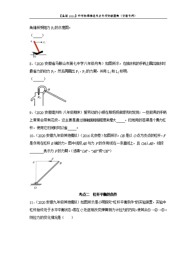 专题16 杠杆--【备战2021】中考物理精选考点专项突破题集(安徽专用)