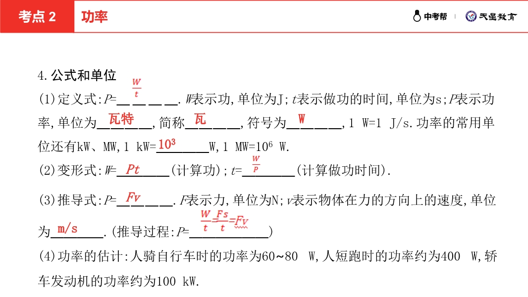 第八讲 第二节 功和机械能--2021版中考帮物理ppt(安徽版)