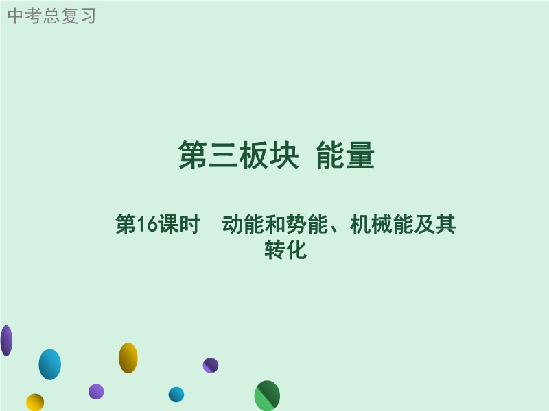 【内容简介】第16课时 动能和势能、机械能及其转化--2021年广东中考物理一轮复习基础整合提升课件