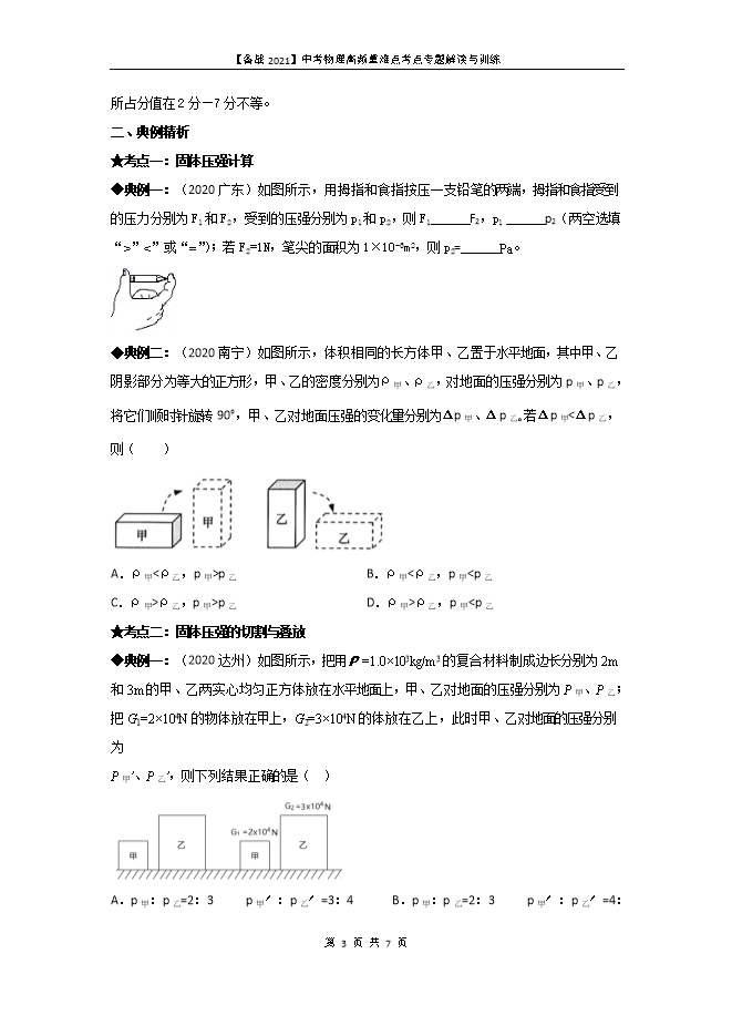 专题07 固体压强及切割叠加问题--【备战2021】中考物理高频重难点考点专题解读与训练(原卷版和解析版)