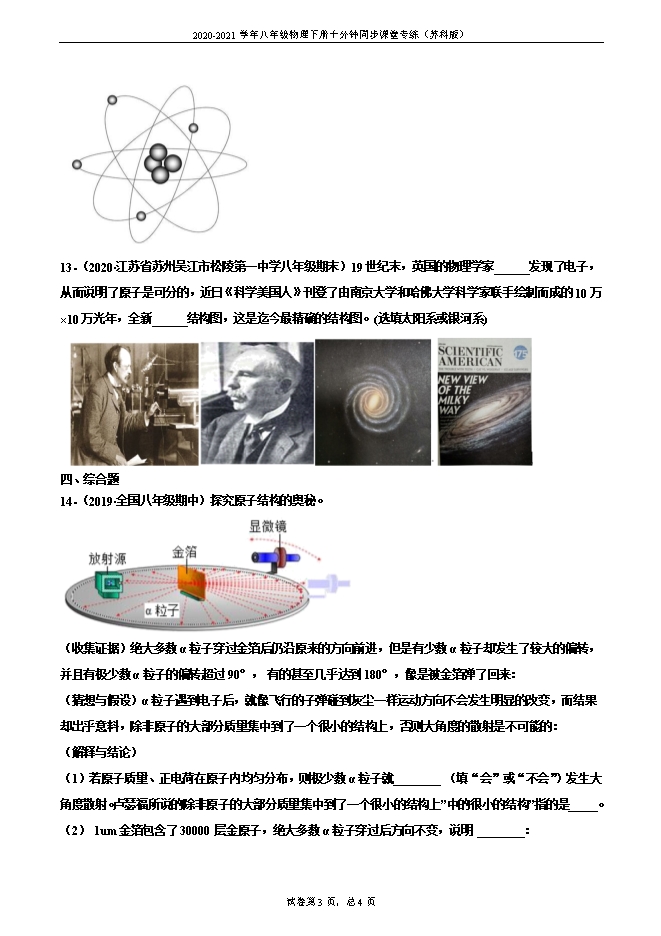 7.3 探索更小的微粒(重点练)-2020-2021学年八年级物理下册十分钟同步课堂专练(苏科版)