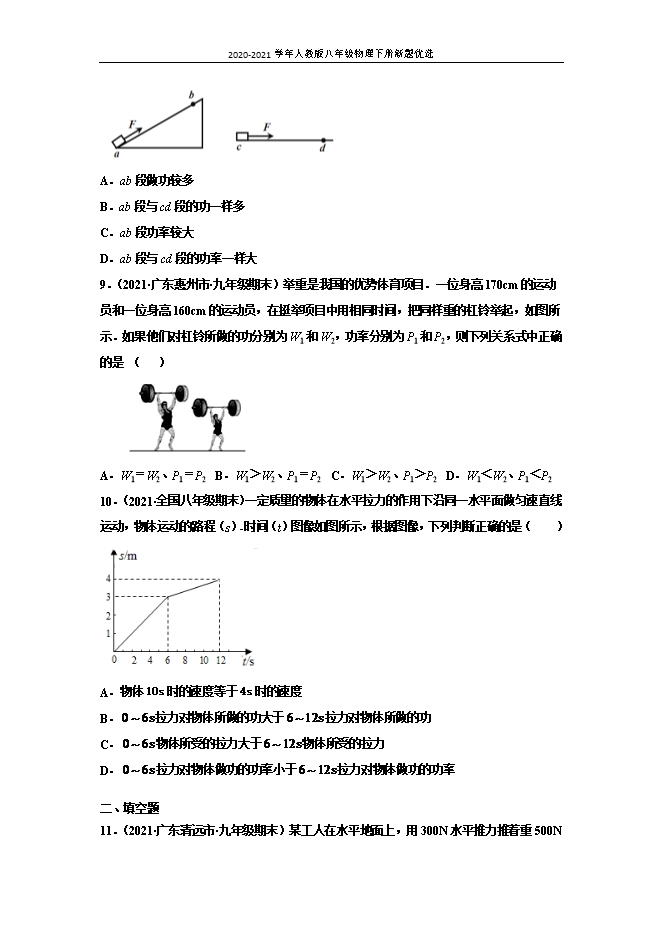 11.2功率--2020-2021学年人教版八年级物理下册新题优选(原卷版和解析版)