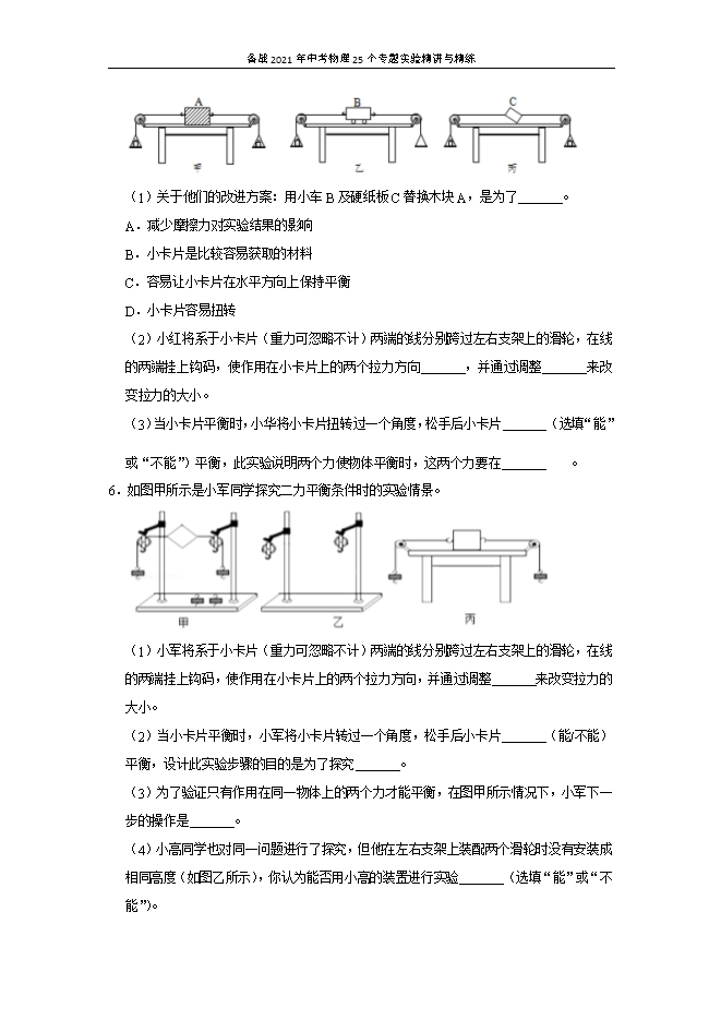 实验11 探究二力平衡条件--备战2021年中考物理25个专题实验精讲与精练