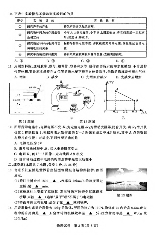 2021年江苏省南京市中考物理真题(pdf版,无答案)