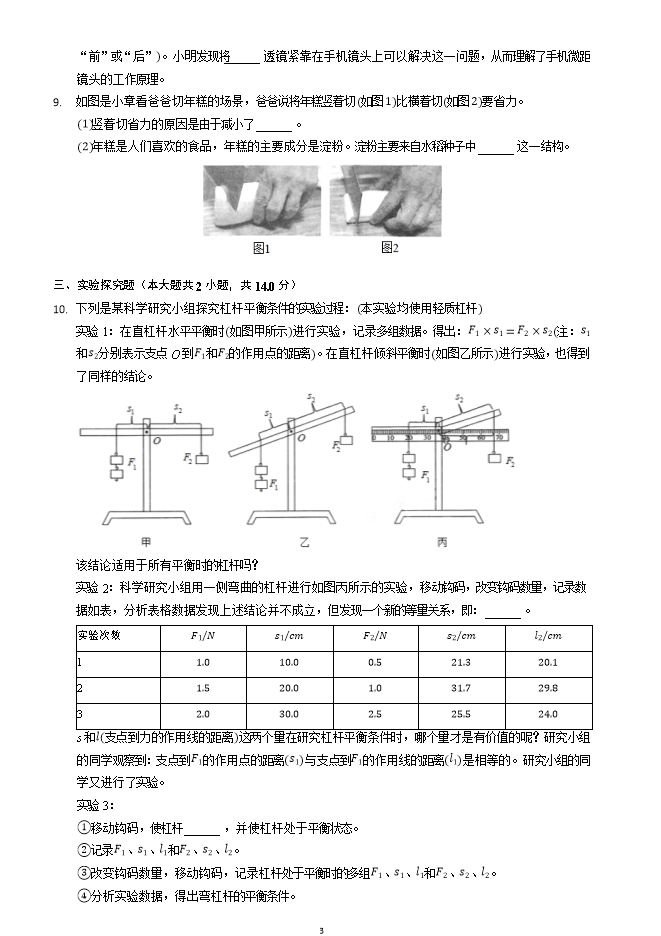 【内容简介】2020年10月15日,《自然》杂志报道了一种可以在15℃下实现超导的新材料,向创造没有电阻的高效电力系统迈出了重要一步。超导材料可以应用在( )A. 电热毯B. 电动汽车动力系统C. 电热水壶D. 充电暖手宝以下四幅家庭电路图中,连接正确的是( )A. B. C. D. 如图是月偏食的示意图,月食轮廓是弯曲的圆弧。下列事实与圆弧的形成无关的是( )A. 太阳光的直线传播B. 地球是球形的C. 月球是球形的D. 地球是不透明的2020年12月17日,“嫦娥五号”返回器携带了超过2千克的月球岩石及土壤样本,在预定区域成功着陆。下列有关说法正确的是( )A. 月球岩石带回地球后质量变大B. 月球岩石带回地球后受到的重力不变C. 月球土壤带回地球后密度变大D. 月球土壤和地球土壤相比不含空气一端封闭的两个完全相同的玻璃管(如图所示),甲中装水,乙中装食用油。两个完全相同的金属小球从O处静止释放,下落到P处,小球在食用油中下落的时间更长。比较两小球从O处到P处的下落情况,则小球( )A. 重力势能变化量不相同B. 获得的动能相同C. 在食用油中重力做功慢D. 机械能不变如图是动圈式话筒的部分结构。声波使振膜左右振动,连接在振膜上的线圈也随之一起振动,切割永磁体的磁感线产生电流,此过程中( ) A. 利用了电磁感应原理B. 利用了通电导体在磁场中受力的原理C. 利用了电流的磁效应D. 产生了直流电二、填空题(本大题共3小题,共14.0分)如图是小勇用自制空气炮吹灭烛焰的实验。拉伸弹性薄膜然后放手,空气会从一端喷出,这是因为气体具有______ 。烛焰被吹灭是由于______ 。利用烛焰被吹灭确定空气流动与下列哪项采取的科学方法相同?______ 。①用带箭头的直线表示光的传播路线和方向②利用被吸引的大头针数目来比较电磁铁的磁性强弱