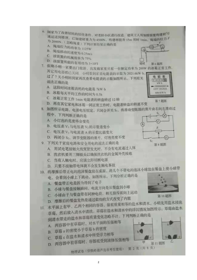 【内容简介】2021年辽宁省铁岭、葫芦岛中考物理真题(图片版 含答案)