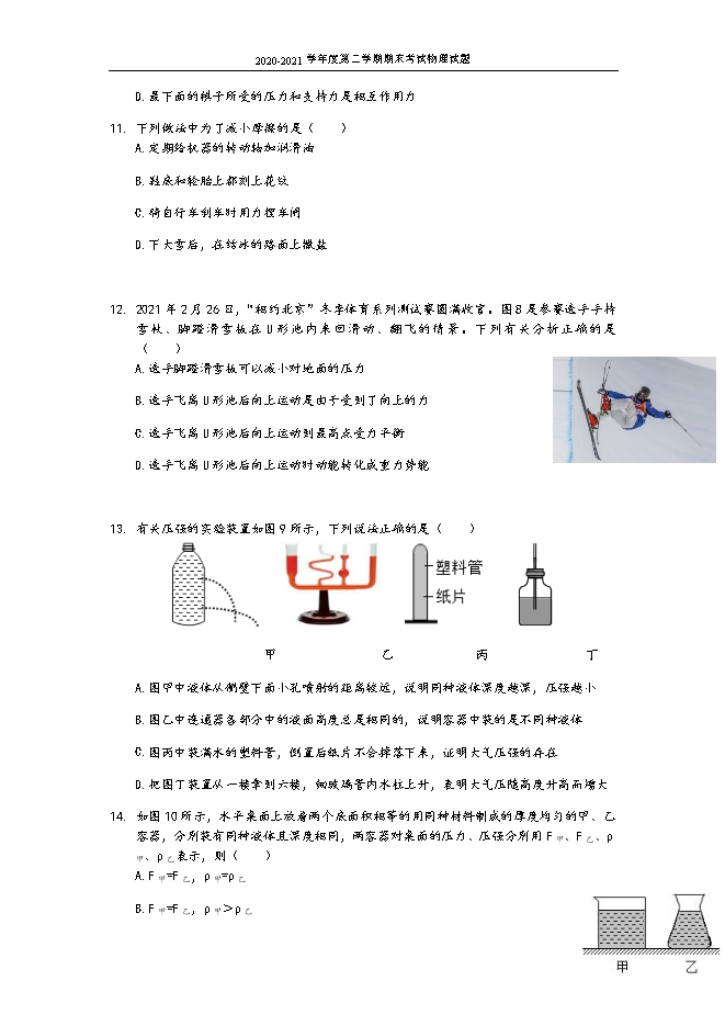 所属专辑: 【精品】2020-2021学年各版本八年级物理下学期期末测试卷