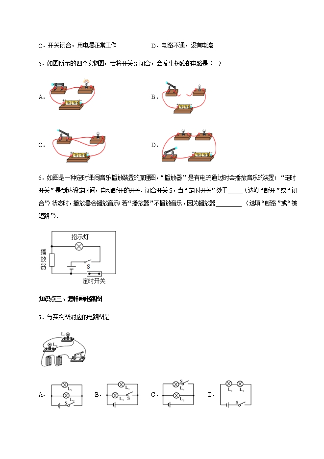 13.2 电路的组成与连接方式—2021-2022沪粤版九年级物理上册同步检测题