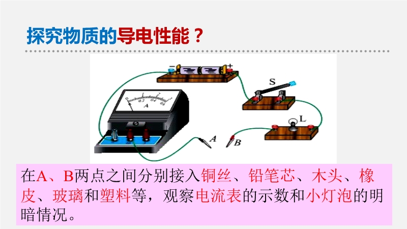 - 122[精品]2021秋北师大版九年级物理ppt课件和素材:11.6 不同物质的导电性能