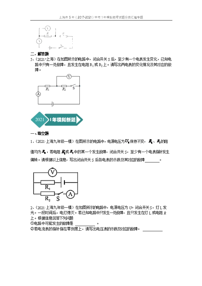 专题10 电学故障分析--上海市5年(2017-2021)中考1年模拟物理试题分类汇编专题(原卷版和解析版)