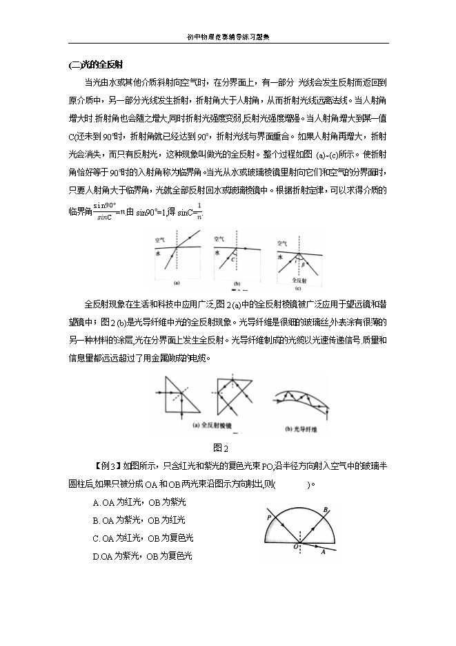 初中物理竞赛辅导练习题集:第四讲 光现象初步3(光的折射)