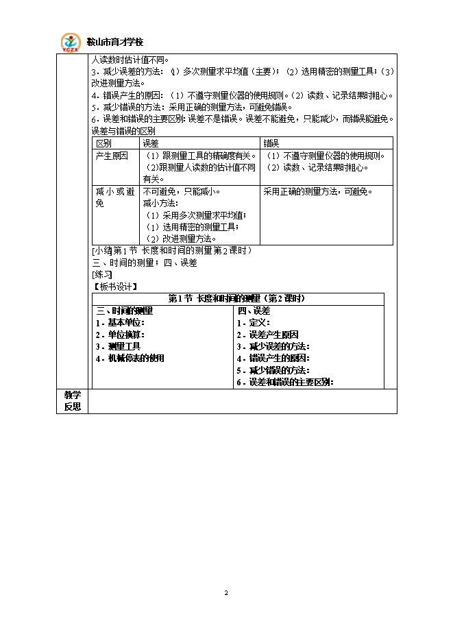 1.1长度和时间的测量(第2课时)--2021秋辽宁省鞍山市育才中学人教版八年级物理上册教学设计