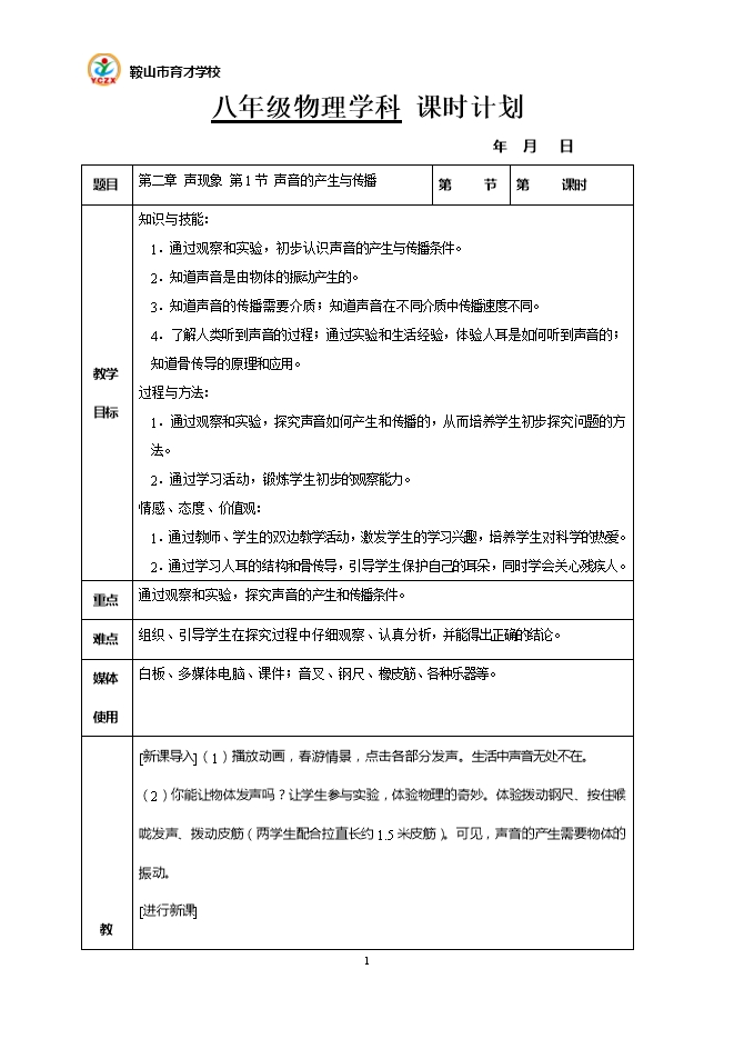 所属专辑: 2021秋辽宁省鞍山市育才中学人教版八年级物理上册教学设计