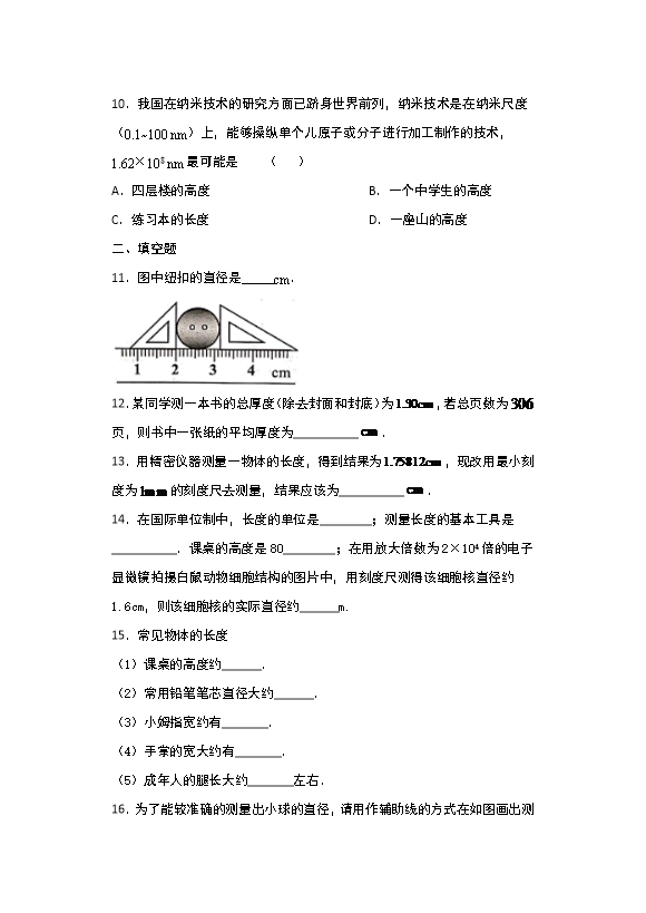 2022-2023学年度沪科版八年级物理培优练习:2.2长度与时间的测量(附答案)