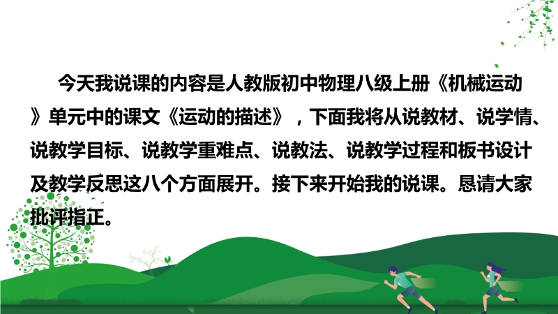 2023-2024学年人教版初中物理八年级上册1.2《运动的描述》说课课件2