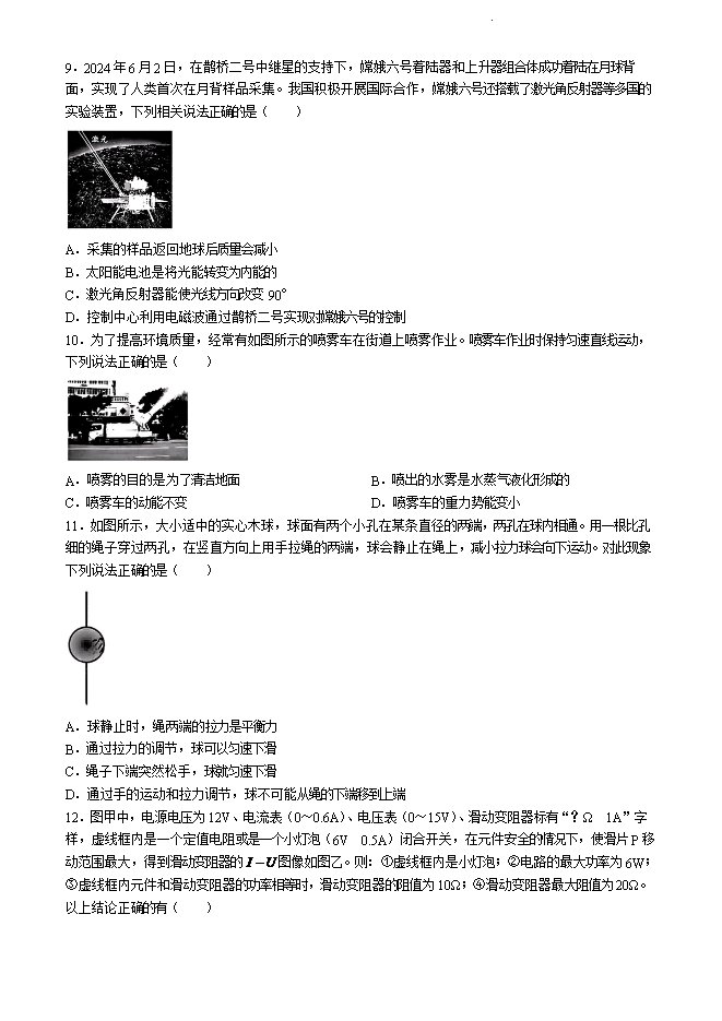 - 上一份试卷:2024年江苏省无锡市中考物理试题(word版无答案)