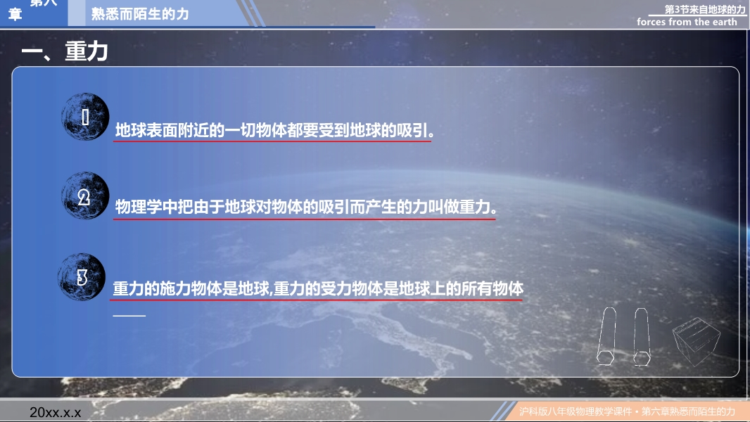 【内容简介】6.3 来自地球的力---2024沪科版八年级全一册ppt课件