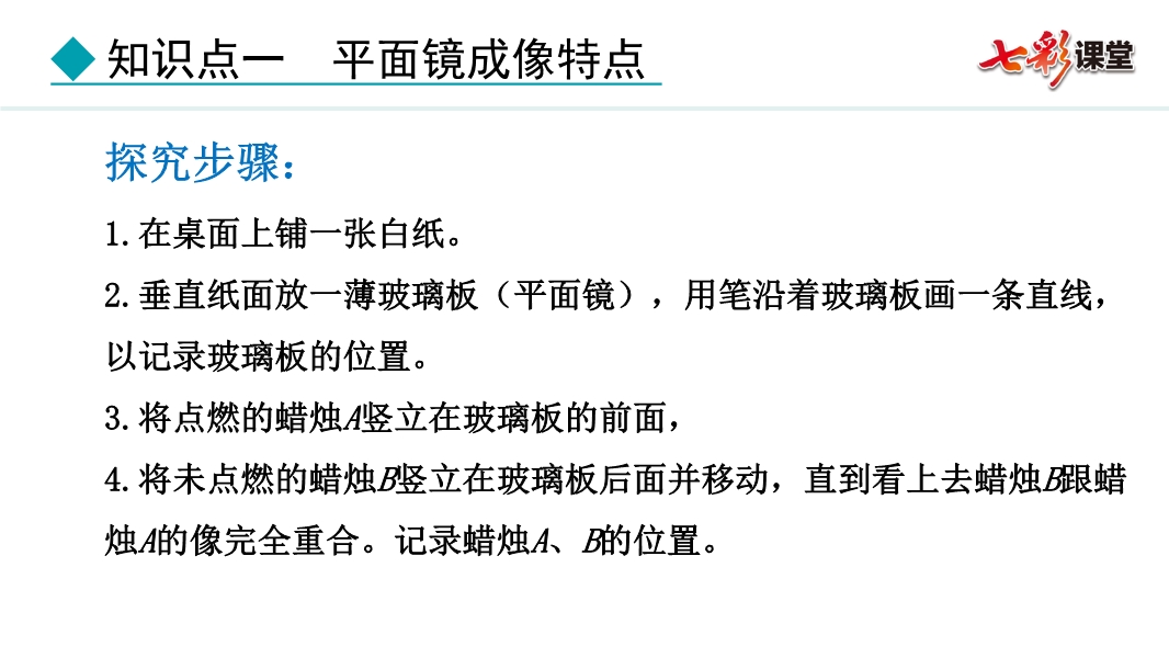 【内容简介】2024秋“七彩课堂”人教版《4.3 平面镜成像 第1课时 平面镜成像》同步教学课件
