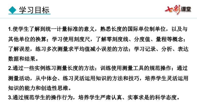 2024秋“七彩课堂”教科版《1.2.1 长度的测量 误差》同步教学课件