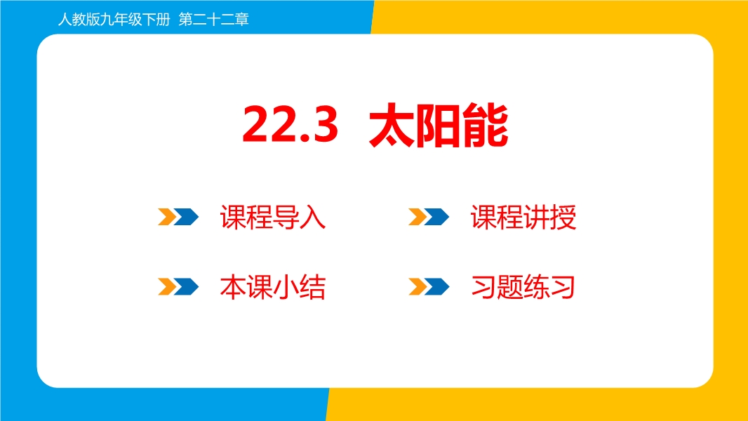 【内容简介】2024-2025人教版九年级下学期物理名师课件:22.3 太阳能