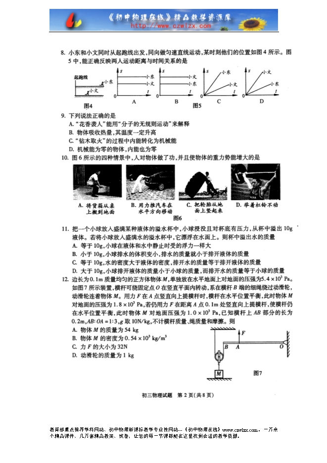 - 1898北京市东城区2011-2012学年度九年级第一学期期末考试物理试题及答案(扫描版)