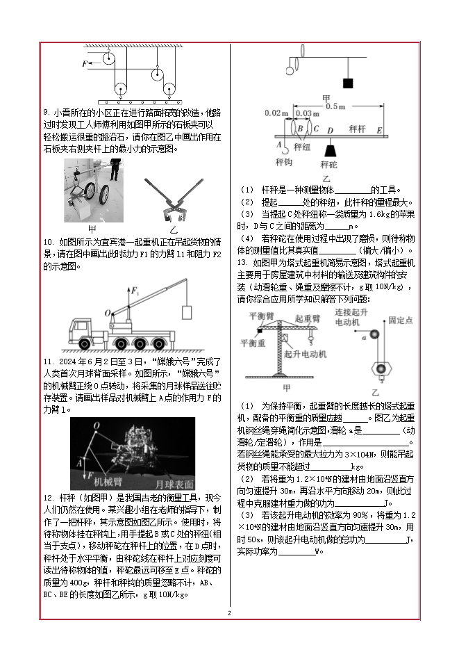 - 1052025-2026学年苏科版物理九年级上册阶段素能测评卷:第11章 简单机械和功(附答案)