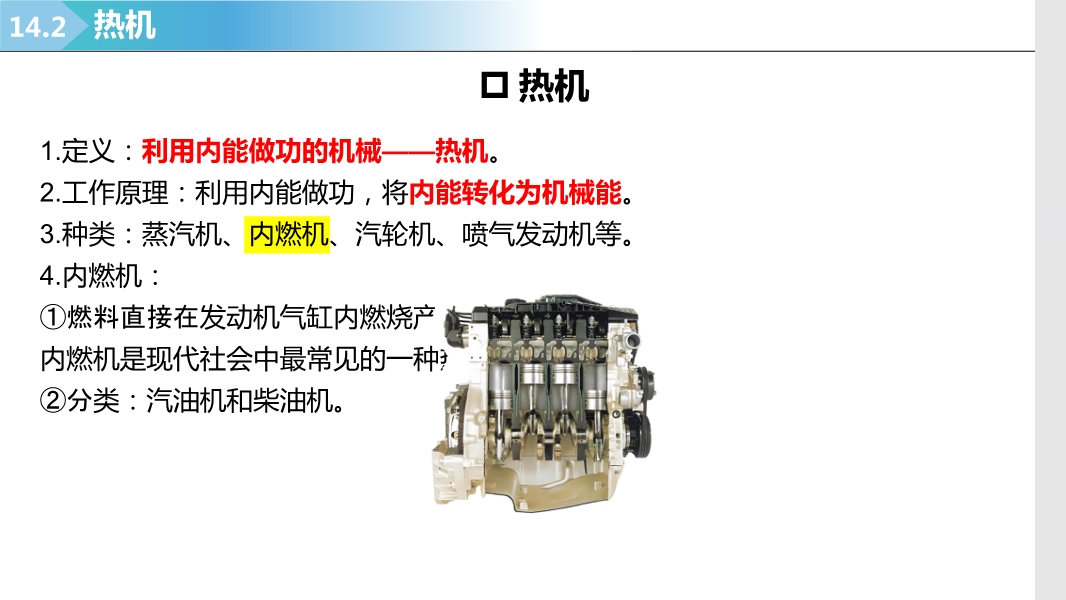 【内容简介】2025-2026学年新人教版九年级上学期物理课件:14.2热机
