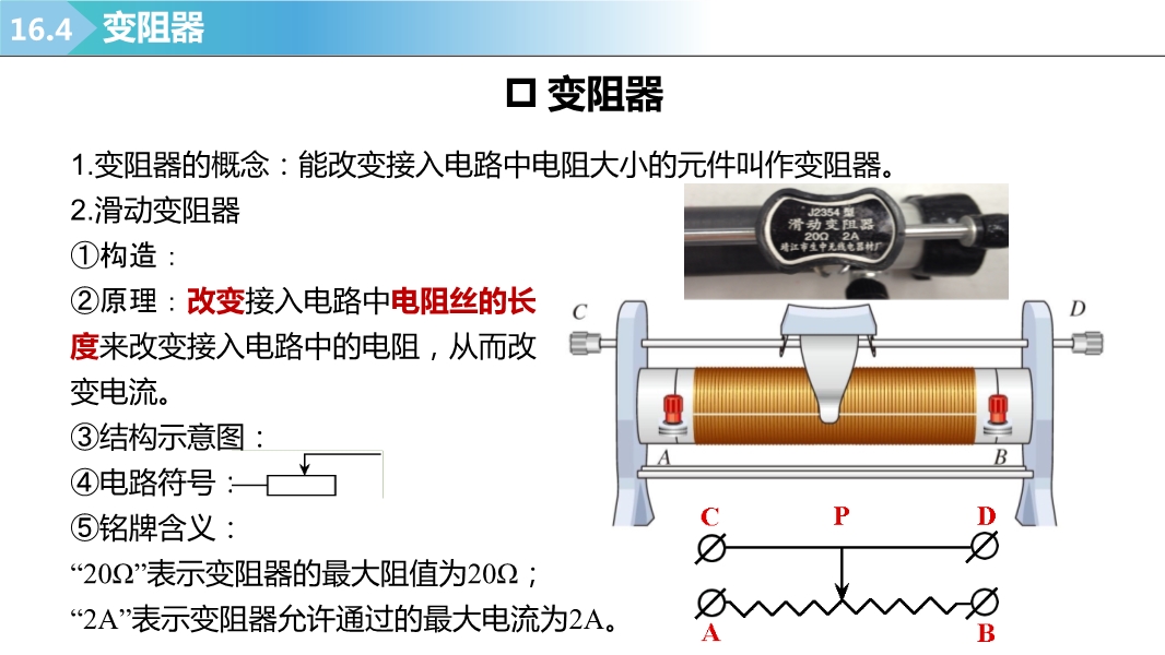 【内容简介】2025-2026学年新人教版九年级上学期物理课件:16.4变阻器