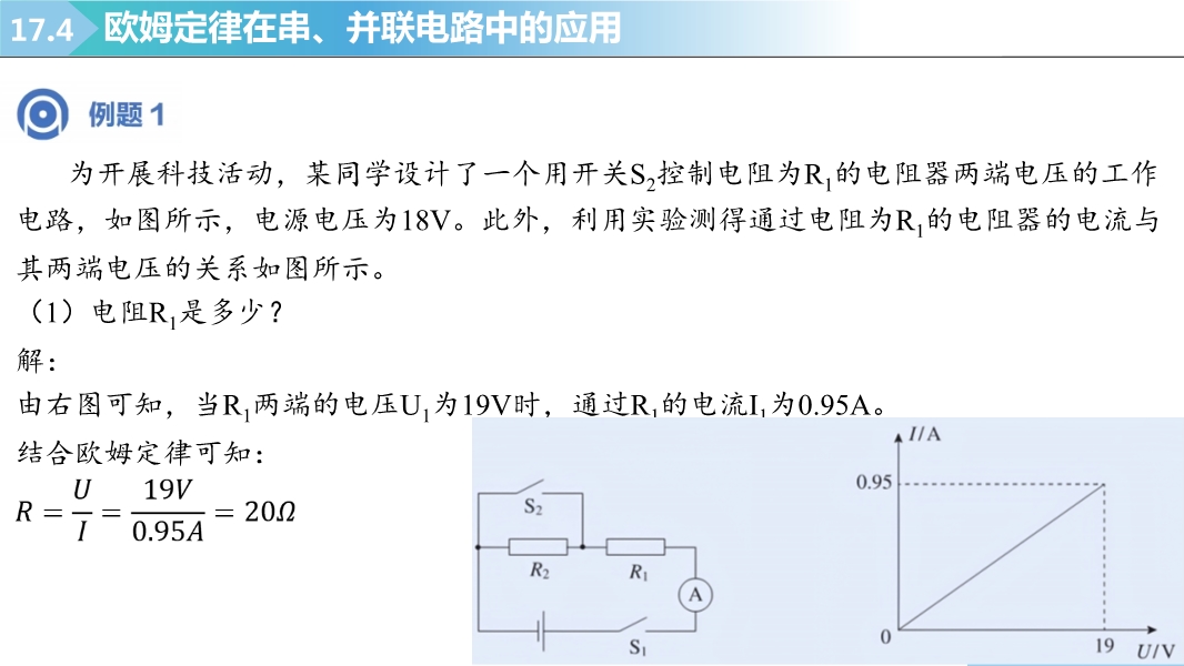 【内容简介】2025-2026学年新人教版九年级上学期物理课件:17.4欧姆定律在串、并联电路中的应用