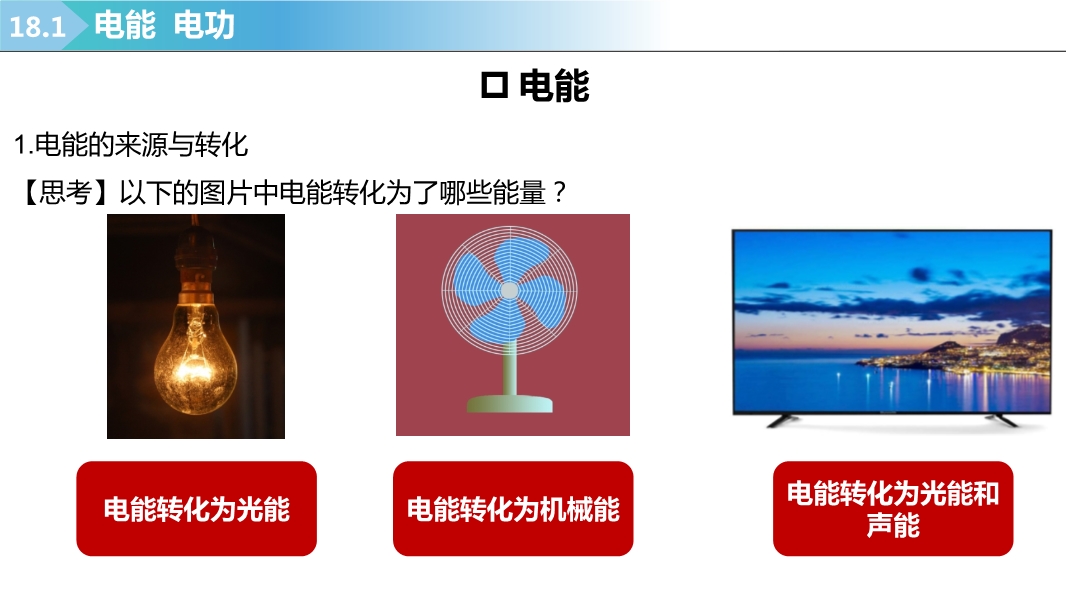 【内容简介】2025-2026学年新人教版九年级上学期物理课件:18.1电能 电功