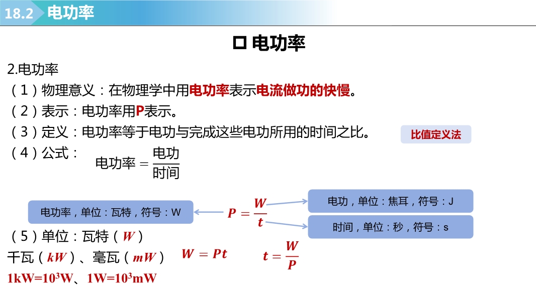 【内容简介】2025-2026学年新人教版九年级上学期物理课件:18.2电功率