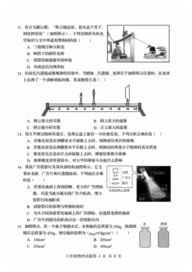 北京市顺义区2025-2026学年八年级上学期期末物理试卷(pdf版无答案)