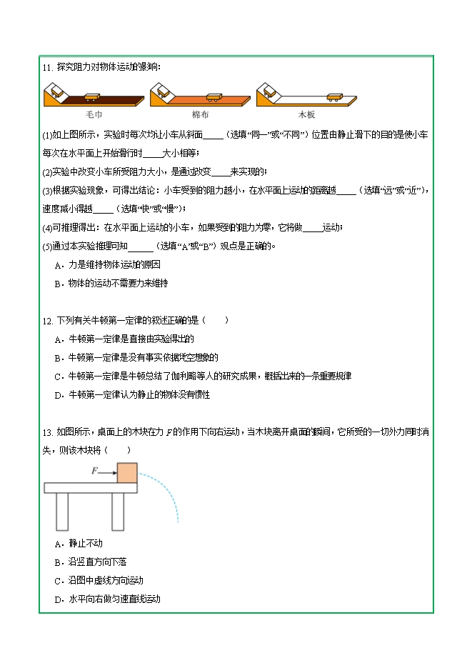 【内容简介】第八章 第一节 牛顿第一定律—2025-2026学年人教版物理八年级下学期预习基础知识填空(附答案)